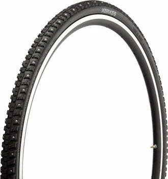 The Xerxes is a studded commuter tire designed to provide unrivaled traction and control on those rides where icy patches threaten your trip. The ultra-narrow profile easily slices through the fluff and allows the 140 carbide tip studs to grip black ice with confidence.