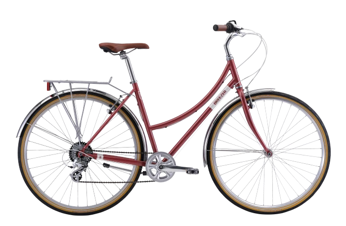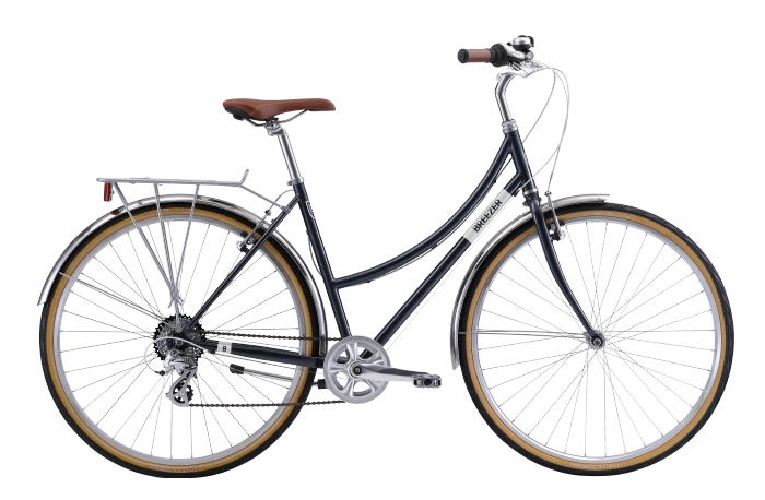Downtown series blends the striking looks of classic city-bikes with modern features and use lightweight chromoly frames in both step-over or step-through styles for ease of use. Carefully-chosen parts like wide-range gearing, polished accents, plush saddles with stitching and timeless color-combinations ensure that wherever you go you’ll arrive in style and comfort. The Downtown is Breezer’s classic chromoly steel town bike: 700C wheels, equipped with matching fenders plus a chainguard, rear rack, kickstand, and bell. Available in eight sizes with Joe’s sprightly town bike geometry and a 7-speed drivetrain operated by an easy twist shifter. Downtowns are a remarkably effortless, fun, and elegant way to get from Point A to Point B. Never before have fashion and function existed in such harmony.