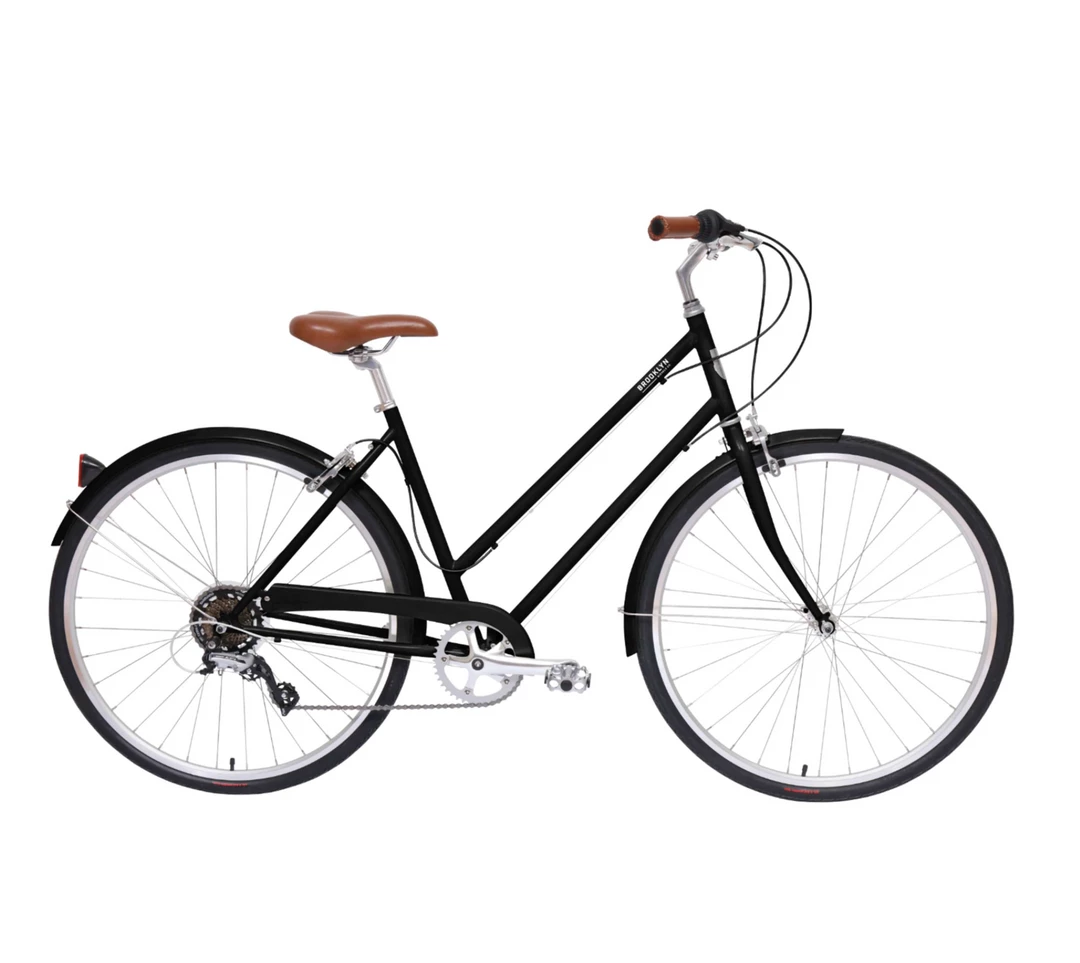 The essential city bike is a fan favorite for getting around town without working up a sweat. Stylish and utilitarian, the Franklin 8 enables riders of all stripes to simply hop on and go. The step-through frame and color-matched fenders ensure easy riding sans wardrobe restrictions, while the lightweight design makes for smooth travel from brunch, to the office, and everywhere in between. With a wide range 8-speed drivetrain and puncture-resistant tires allowing you to conquer varied terrain, this bike is as versatile as it is stylish.