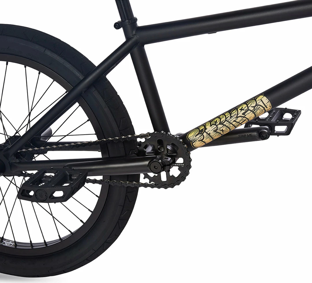 The Fit STR bikes are street machines, through and through.Β Starting with our fine-tuned βStreetβ geometry in 20.5β³ top tube options and a 12.6β³ chainstay length for snappy response.Β Add 4-piece, 9β³ rise bars, shorter 165mm chromoly cranks and the four included steel pegs and you have the foundation of a tried & true street setup. Sealed bearings throughout the build, with Fit Crossfit flangeless grips, a double-wall rear rim and Fit F/U 2.4β³ tires that keep gripping when things get grimey. If riding ledges, wall rides, rails and everything in front of you is the plan, take a good look at the Fit STR.