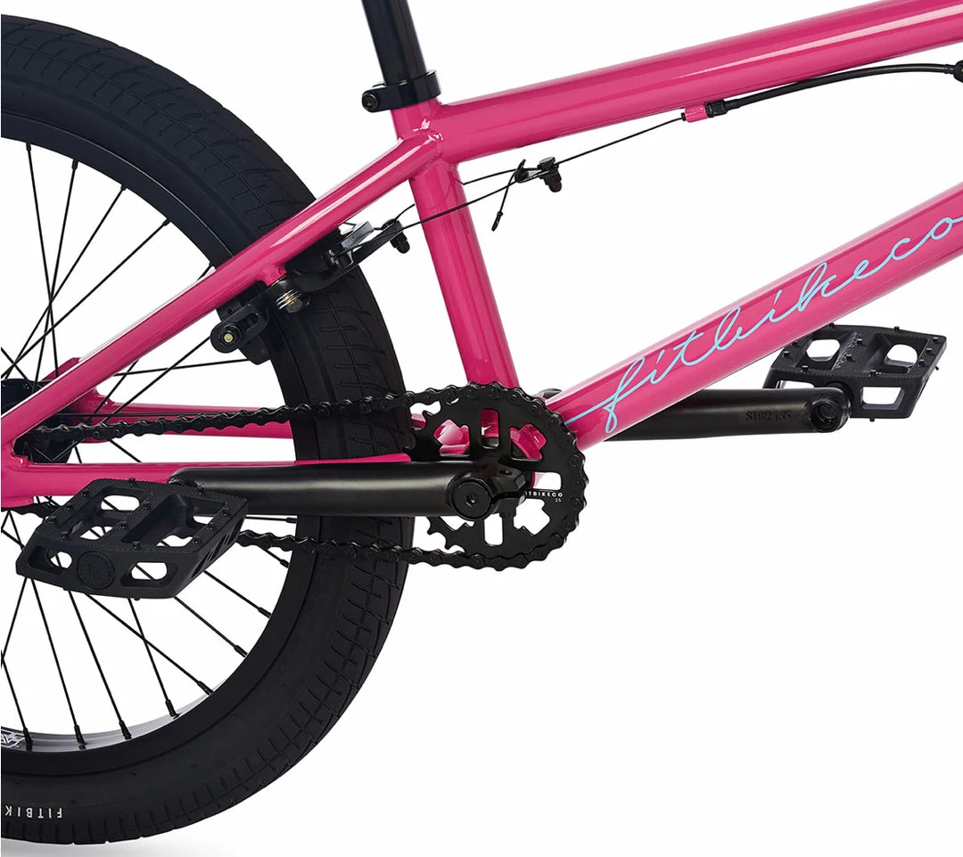 Park ready. The Fit PRK completes are purpose-built for aspiring park riders, with our nimble, quick-handling βParkβ geometry. A super short 12.6β³ rear end & steep 75.3 degree head tube angle make spins faster, whips easier and the balance points, front & rear, quicker to find.Β Available in two different sizes, XS (20β³ top tube) and MD (20.5β³ top tube), the PRK bikes feature a low-profile frame, constructed with a chromoly front triangle for the most technical riding pursuits.Β Tight & right spec. like 8.7β³ rise bars, shorter 160mm 3-piece cranks and sealed bearings all around.Β Brakes are a key component for many park riders, so the PRK comes with our updated U-brake with a softer pull and a sealed detangler device to keep your bars spinning freely and your brakes at full power. Spin to win, the Fit PRK completes are ready to drop in.