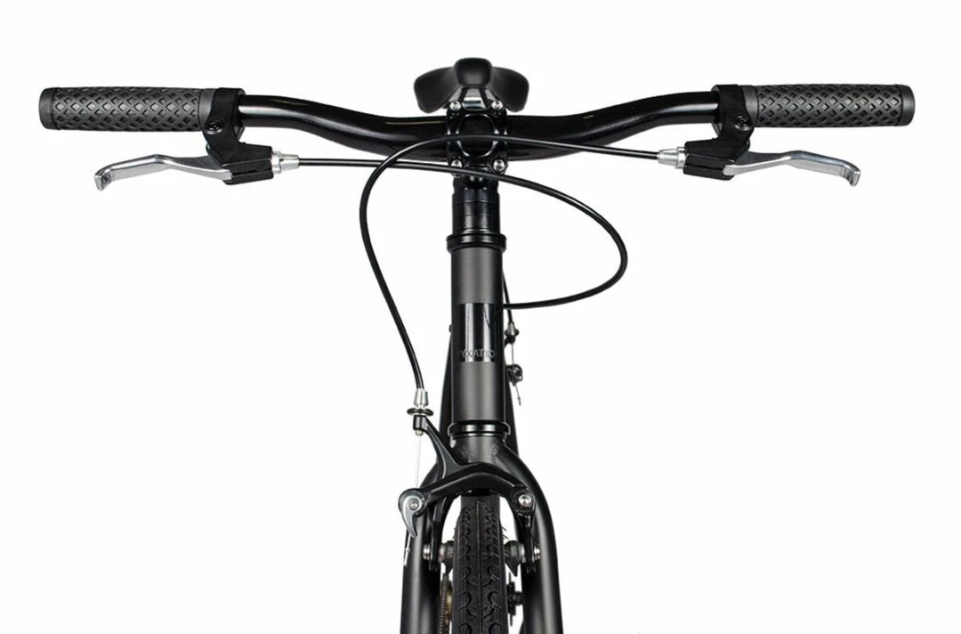 Fun, fast and affordable, the Pixel is a hassle free fixed gear/single speed bicycle designed and built by Fyxation for the everyday rider. The Pixel has an upright design that makes it ideal for sliding through traffic, commuting to work or simply cruising around campus. The Matte Black Pixel stands out from the crowd while blending in and features all black parts and very subtle gloss black decals.