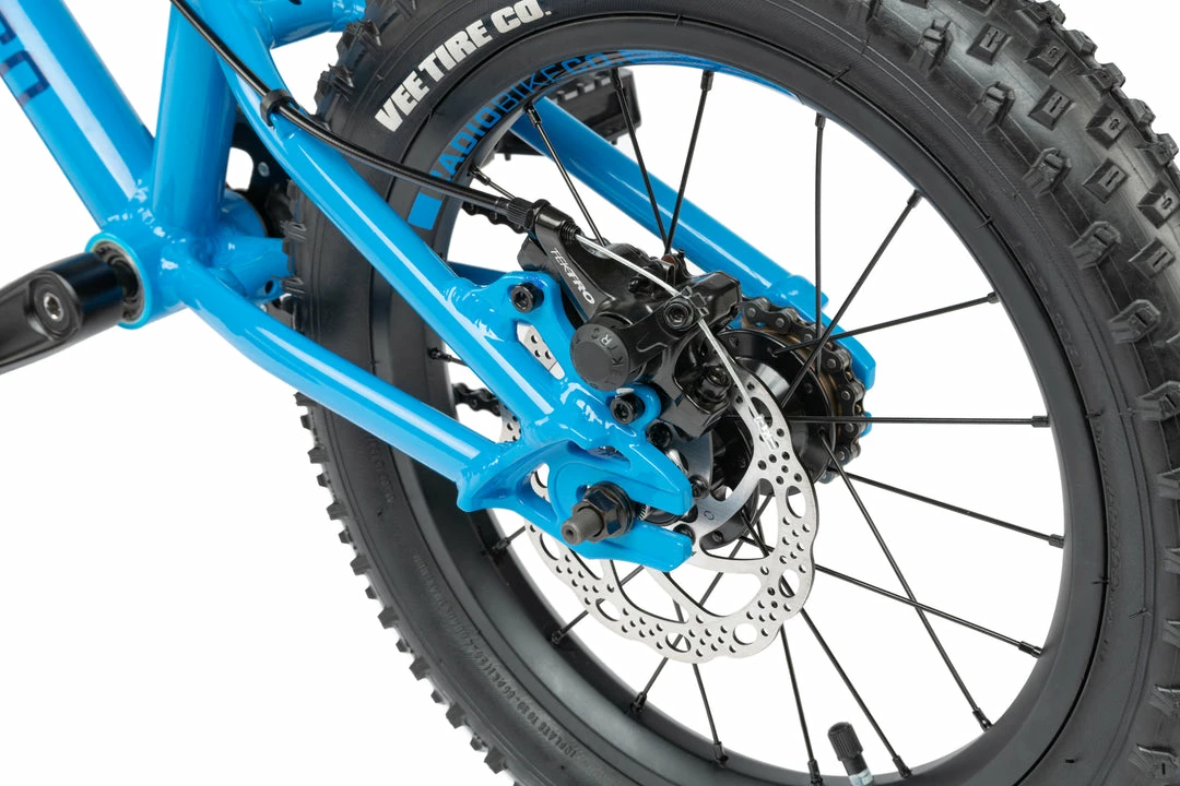 The Zuma is a carefully spec’d bike with a lightweight alloy frame and fork. It features double wall rims, and children specific aftermarket components from Promax KMC, FSA, VEE Rubber and Satori. Feels like a hight end adult mountainbike, only it’s just their size. Β