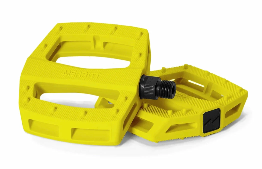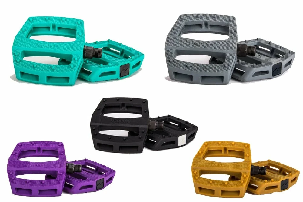 The Merritt P1 Pedals are a lightweight and durable BMX Pedal designed using a special nylon and fiberglass blend to increase its strength and longevity, and coming in a variety of colours.