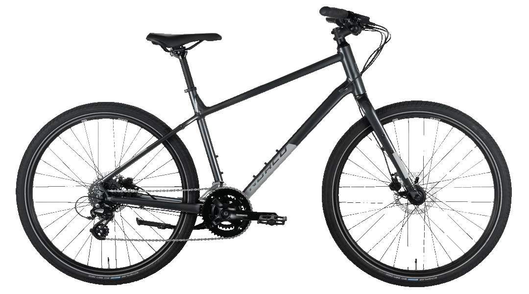 The Indie 2βs Shimano Altus 16-speed drivetrain provides quick, reliable shifts through a wide range of gears while its anti-rust chain fights off the weather. The bolt-on wheels are secure when locked up in the city, and the Tektro hydraulic disc brakes provide clean, quiet, confident stopping power no matter what the weather or terrain.