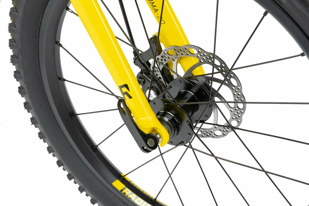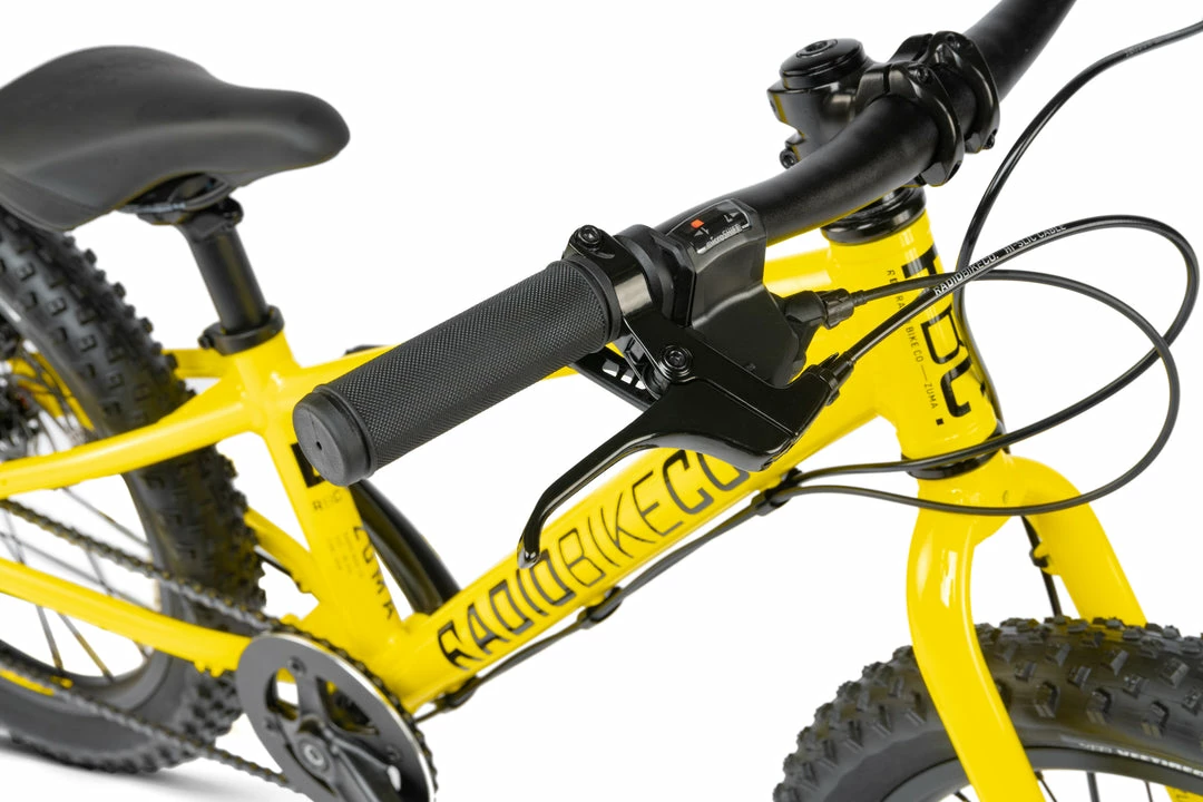 The Zuma is a carefully spec’d bike with a lightweight alloy frame and fork. It features double wall rims, and children specific aftermarket components from Promax KMC, FSA, VEE Rubber and Satori. Feels like a hight end adult mountainbike, only it’s just their size. Β