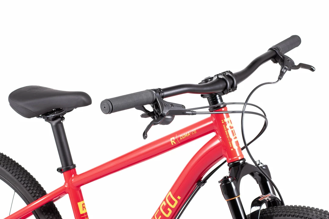 The Zuma is a carefully spec’d bike with a lightweight alloy frame and suspension fork. It features double wall rims, and children specific aftermarket components from Promax KMC, FSA, VEE Rubber and Satori. Feels like a hight end adult mountainbike, only it’s just their size. Β