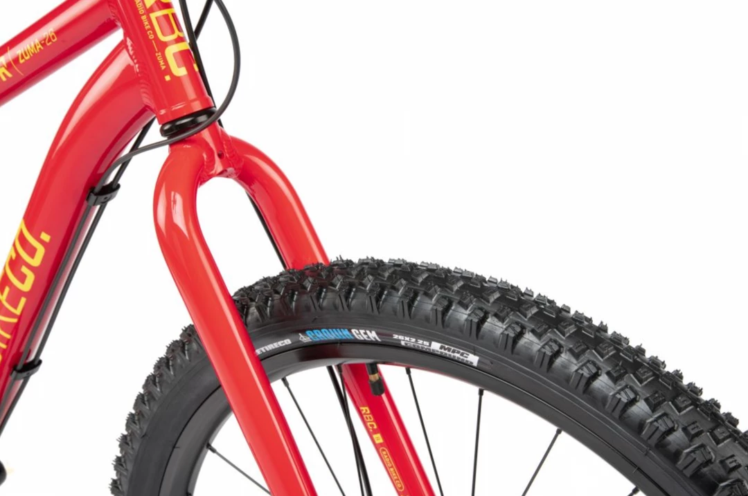 The Zuma is a carefully spec’d bike with a lightweight alloy frame and fork. It features double wall rims, and children specific aftermarket components from Promax KMC, FSA, VEE Rubber and Satori. Feels like a hight end adult mountainbike, only it’s just their size. ย
