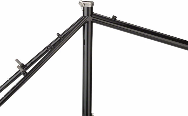 - Bosses front and rear for cantilever or linear-pull brakes, eyelets at the dropouts, dual water bottle mounts, and fully threaded through-blade fork eyelets for a front rack