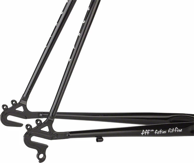 - Semi-horizontal dropouts with a derailleur hanger for geared or singlespeed drivetrains and/or wheelbase adjustability