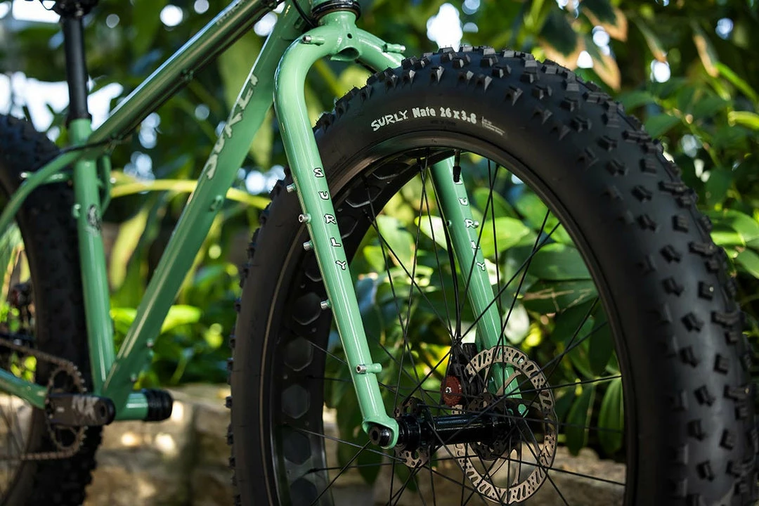- Tires: Β Surly Nate 26 x 3.8Λ, 60tpi, tubeless ready